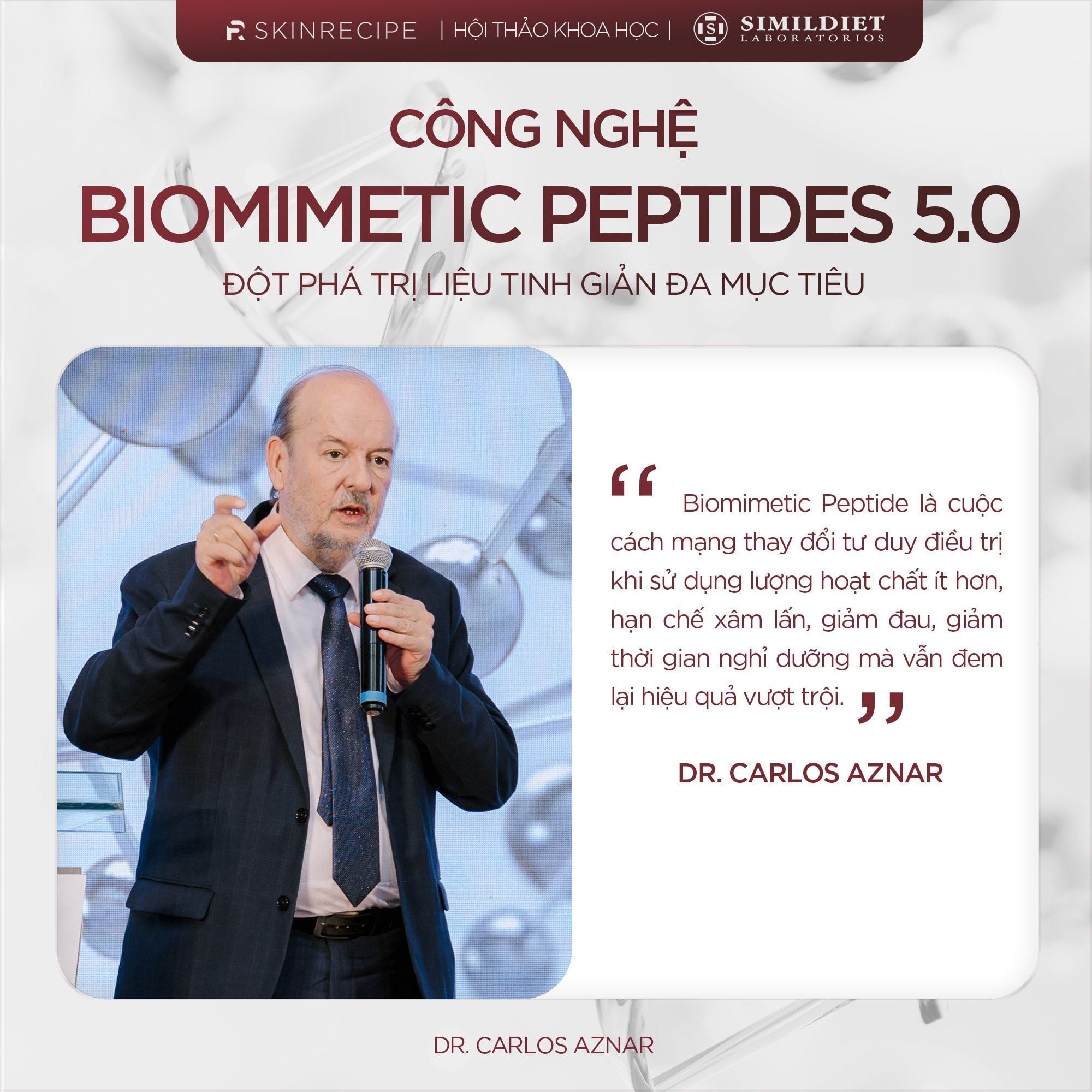 Những chia sẻ chân thành, cởi mở và giàu chuyên môn từ các diễn giả đã mở ra nhiều hướng đi mới cho việc ứng dụng peptide sinh học trong điều trị, đồng thời khẳng định cam kết của Simildiet trong việc đồng hành cùng đội ngũ bác sĩ, chuyên gia làm đẹp Việt Nam bằng tri thức và công nghệ hiện đại nhất.