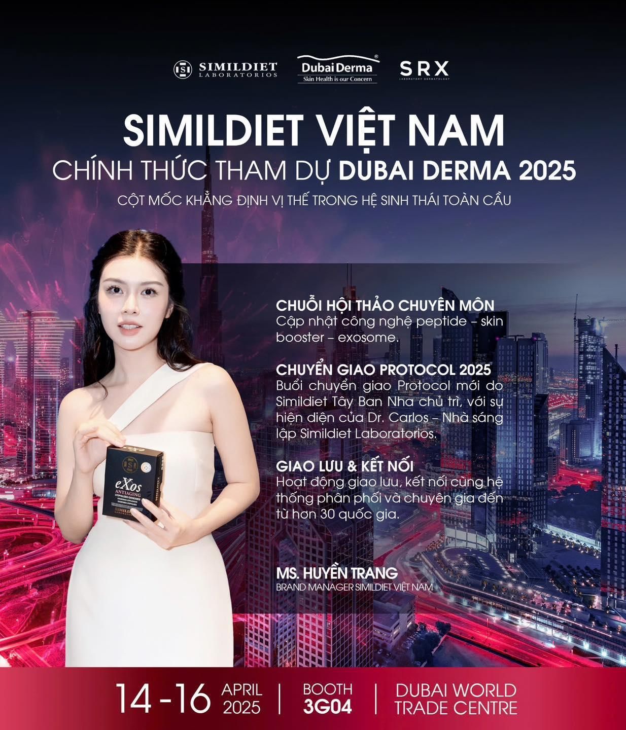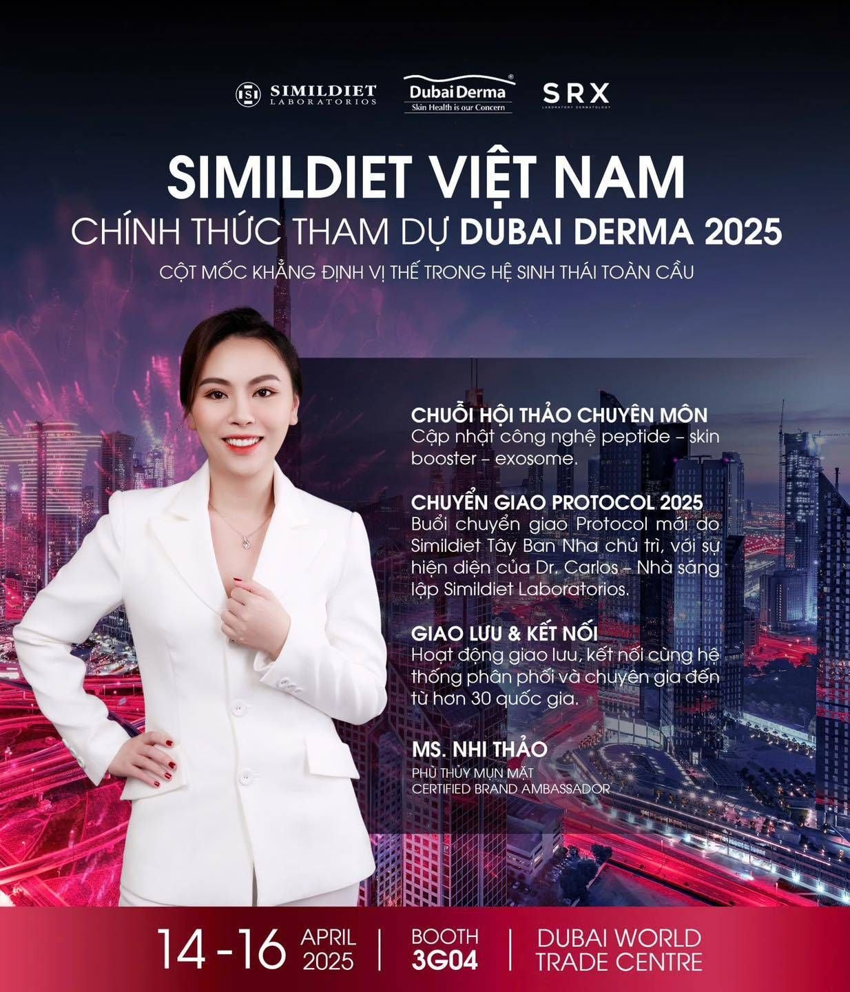 Việc hiện diện tại Dubai Derma 2025 là bằng chứng cho sự công nhận quốc tế đối với năng lực chuyên môn, chất lượng sản phẩm và tầm nhìn phát triển bền vững của Simildiet – thương hiệu luôn tiên phong vì vẻ đẹp an toàn và chuẩn khoa học.