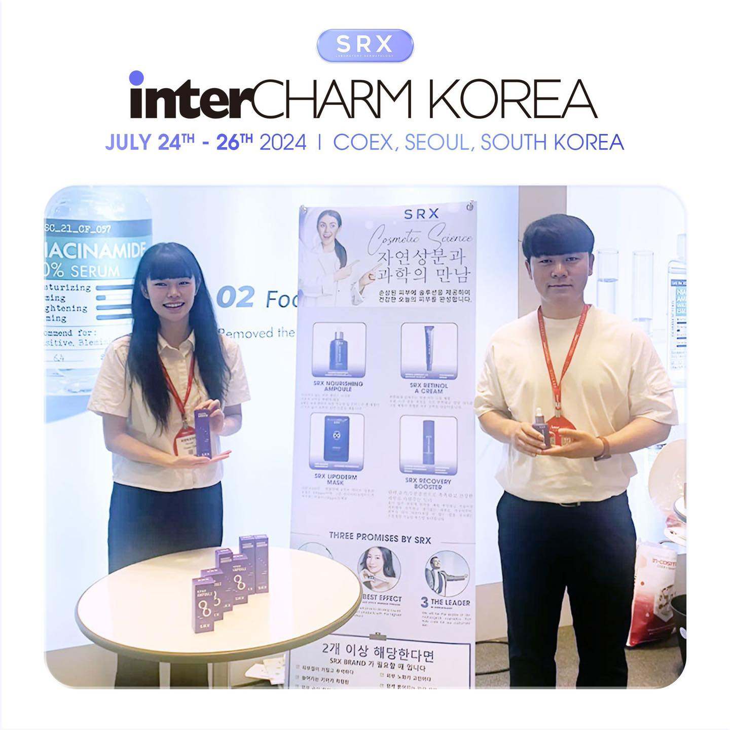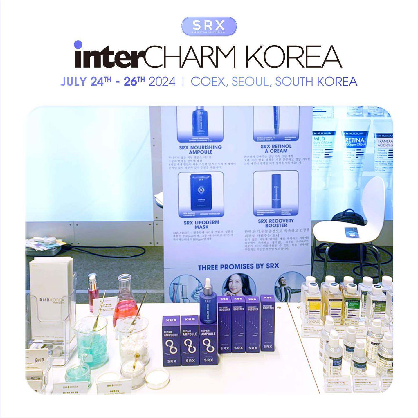Tại InterCHARM Korea 2024 (diễn ra từ 24–26/7/2024 tại COEX, Seoul), SRX Laboratory tự hào mang đến không gian trưng bày ấn tượng, nơi khách tham quan có thể trải nghiệm trực tiếp những công nghệ và sản phẩm tái tạo da sinh học tiên tiến nhất.