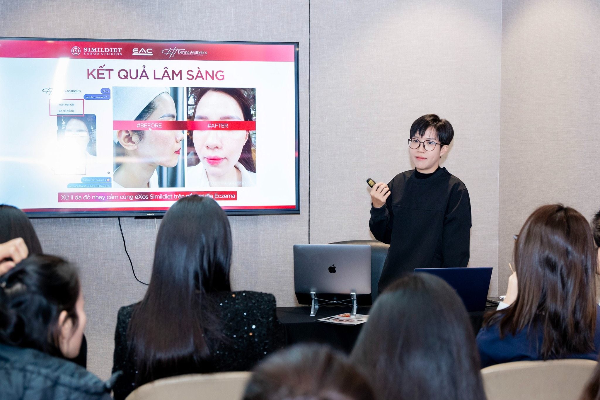 Trong phần báo cáo, BS Nguyễn Hiếu đã trình bày nhiều case lâm sàng ấn tượng, minh chứng rõ ràng cho hiệu quả vượt trội của công nghệ eXos Antiaging.