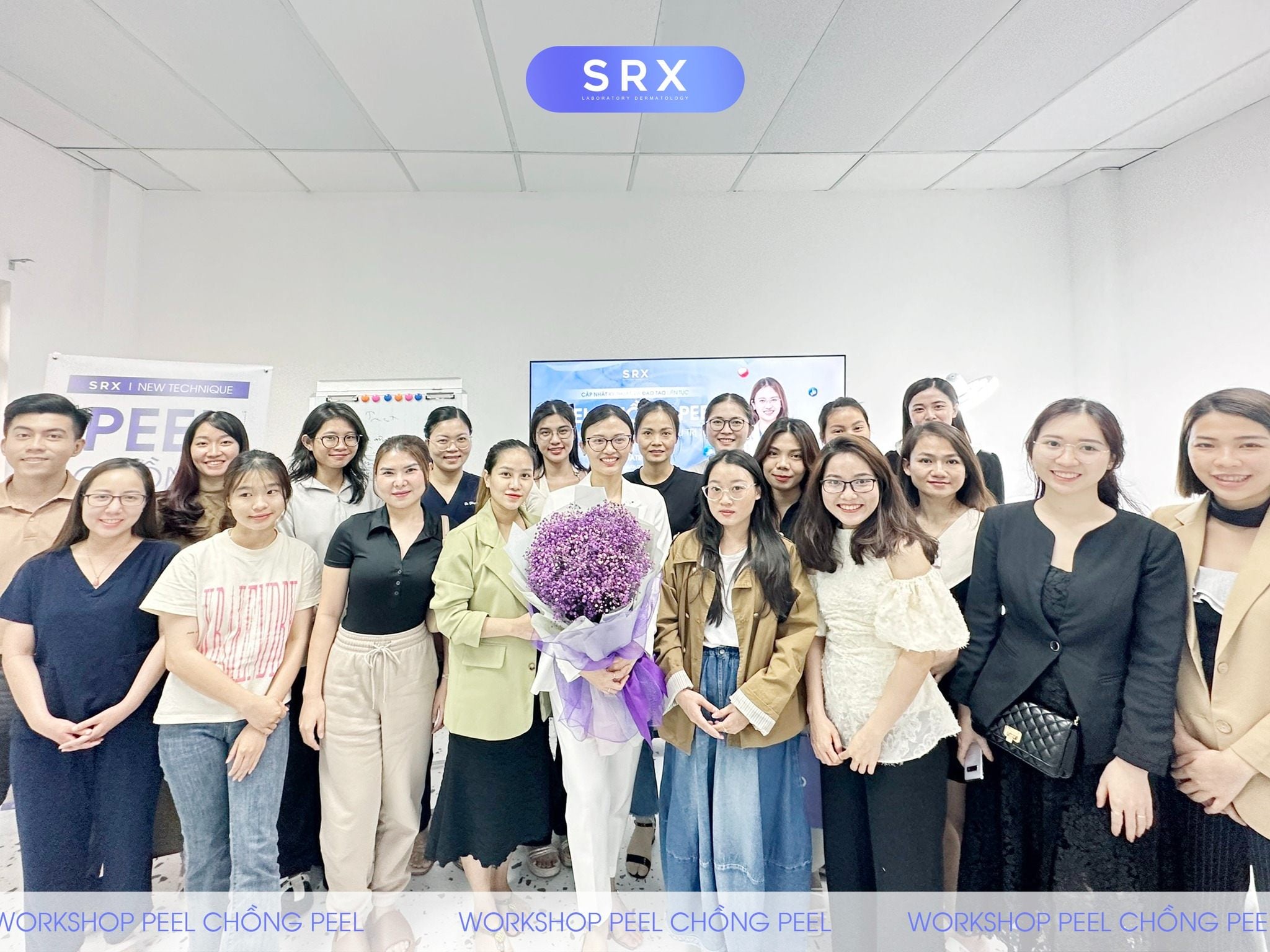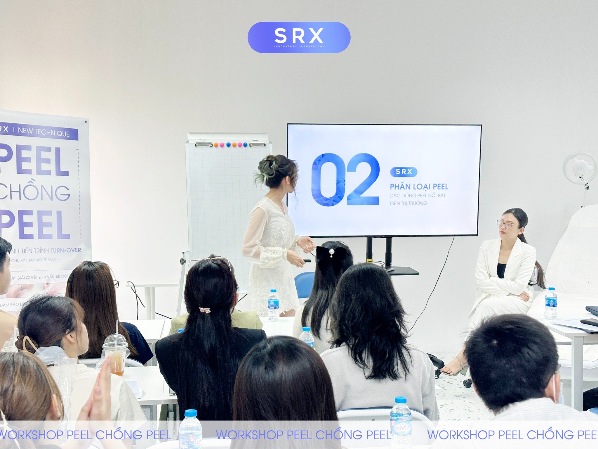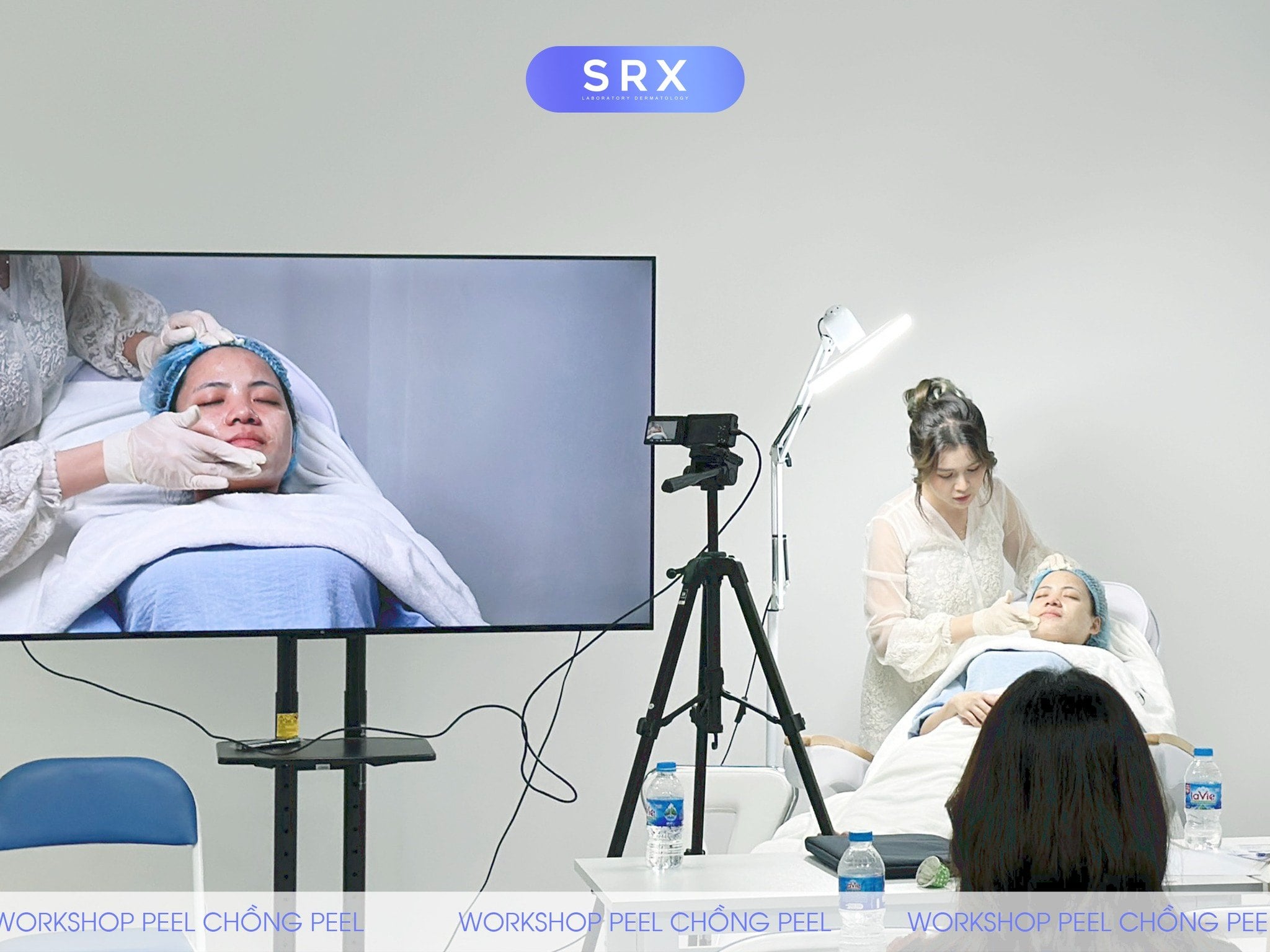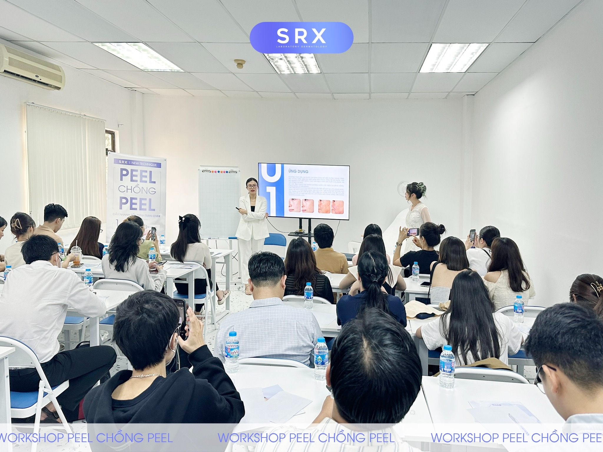 Workshop đào tạo kỹ thuật Peel chồng Peel do bs Phạm Lâm đứng lớp, nhãn hàng SRX tài trợ được tổ chức nhằm giúp Spa, Clinic nắm vững kỹ thuật peel chuyên sâu, hiểu rõ cơ chế hoạt động và cách phối hợp peel hiệu quả cho từng tình trạng da.